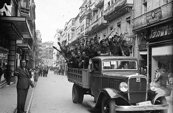 Figure 1.1 Falangists (Spanish Fascists) after the triumph of the Coup in Vigo (Galicia, Spain), c. 1936. © Histagra Collection / Histagra Research Group.