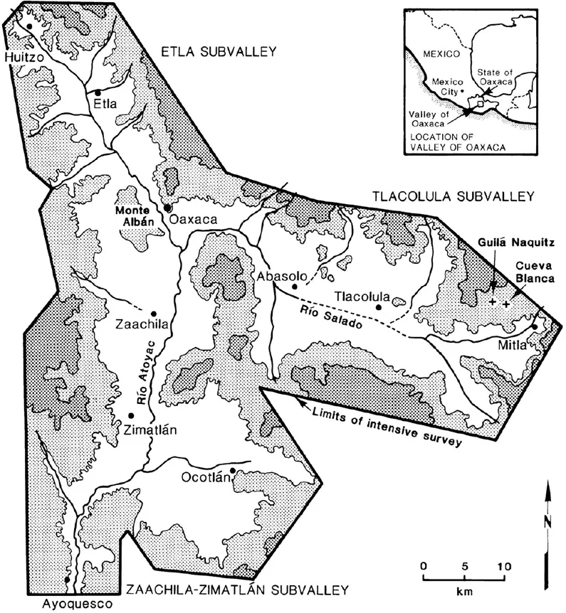 Figure1.2 The Valley of Oaxaca, Mexico, showing survey boundaries.