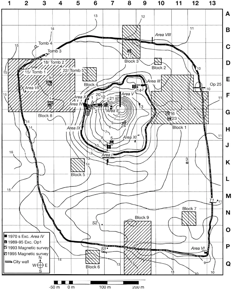 Figure1.3 Excavation units and survey areas at Tell es-Sweyhat.