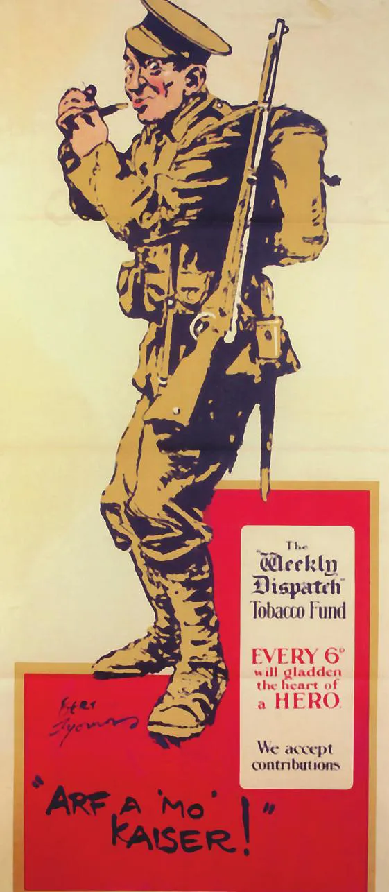 They included one work by the Glasgow-born artist, illustrator and cartoonist Alexander Stuart Boyd (1854â1930) and four by Welshman Bert Thomas (1883â1966), who was famous for his cartoon-poster of a grinning Cockney Tommy lighting a pipe with the caption âArf a âMoâ, Kaiser!â It appeared in the Weekly Dispatch of 11th November 1914 as part of the paperâs tobacco-for-troops fund, which raised an estimated ÂŁ250,000. Leete provided five works, the largest number, including YOUR COUNTRY NEEDS YOU. His other popular cartoons were listed as: âYah! [sic] I will make meinself bigger or burstâ (15th August), âOur Jack, Britainâs Trump Cardâ (15th August), âGot Him!â (22nd August) and âHe didnât know it was loadedâ (29th August). They were offered for sale âpost free for Sixpence eachâ.