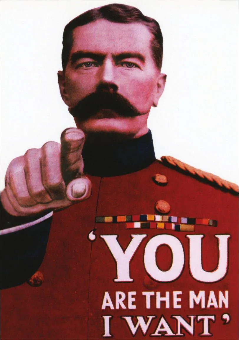 Kitchener played a crucial role during World War I as Secretary of State for War; and traditionally it is believed that through the combination of Leeteâs forceful and eye-catching image and Kitchenerâs military prowess and popularity this poster design was instrumental in raising the armies of millions of men for frontline duty until conscription was introduced in 1916.
