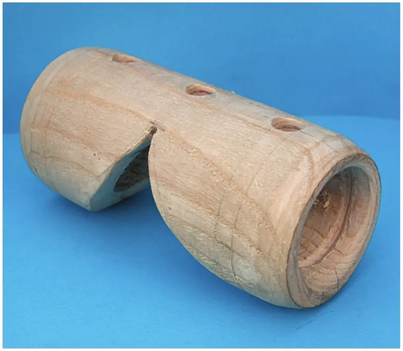 Earthenware pots progressed to clay barrel traps – a tube made from coarse earthenware, which was a mixture of clay and ground-up fired pots known as grog. The traps were designed after consideration to the mole’s own natural environment – tunnels – and made from a mould. Although some mole catchers may have made their own, the local potter was always to hand. The clay barrels were made to no fixed size, and I have different dimensions for these traps from the same family of mole catchers. They were approximately 6in (150mm) in length and between 2in (50mm) and 2½in (60mm) in diameter. Two grooves cut internally at each end held snares that were used to catch the mole. Two holes in the top of the trap above these grooves allowed for a string or wire to form these snares. A third middle hole was for a peg, which was the trigger that released the trap. To enable a mole to be removed from the trap, a V-shaped cut was made to the underside of the trap body. By researching genealogical dates of the people who used these traps, it was found that the traps were used during the seventeenth and eighteenth centuries and long into the nineteenth century. They were the first of a series of traps that were powered by a bent stick, which I will cover later. The snares were merely a loop tied in each end of a wire or string, which sat in the groove in the trap. Another string was passed through the middle hole and tied between the snares. This allowed the snares to close and pull any mole up to the roof of the trap. The middle hole was plugged with a small peg that, with the middle string passed through, would prevent it from being pulled through unless the peg was removed. The removal of this peg by the mole was the trigger that operated the clay trap. These clay barrel traps were an advance in mole catching, but they were easily broken underfoot by both animal and man. The harsh conditions in which these traps were used also demanded a stronger material.