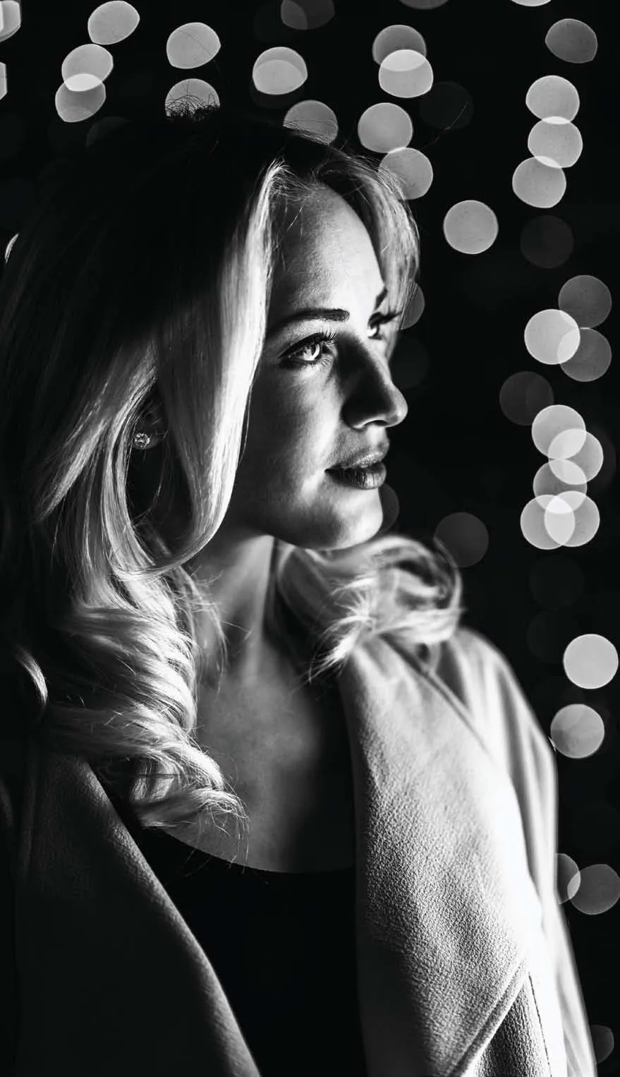 Here a simple one-light set-up can recreate the look of a classic Hollywood image in film noir style. Nikon Df, 24–70mm ƒ2.8 E, 1/200th, ƒ4, ISO 100, SB-910 Speedlight, SU-800 infrared remote trigger, Lastolite softbox with honeycomb grid.