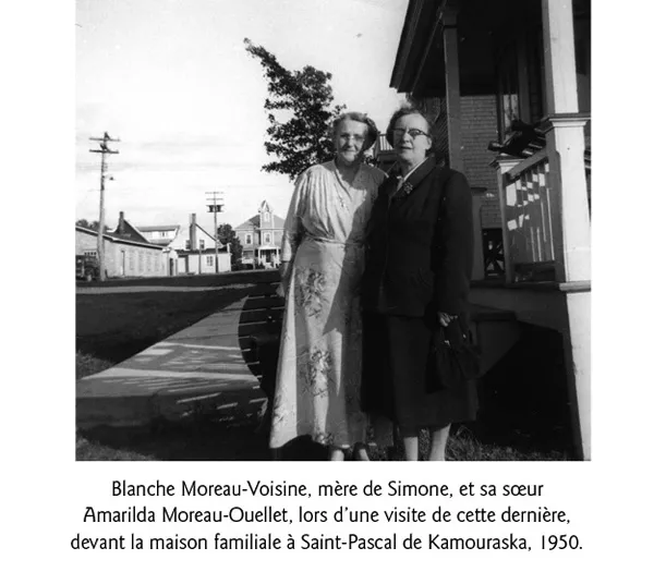 La mère de Simone, Blanche Moreau, originaire de Mont-Carmel, dans le Bas-Saint-Laurent, venait d’une famille assez à l’aise qui comptait sept enfants, six filles et un garçon. Monsieur Moreau avait même été maire du village. Formée par les Sœurs de la Charité au couvent Foyer Sainte-Anne de la Pocatière, qui offrait les cours du primaire et du secondaire2, Blanche était devenue, à l’instar de ses sœurs, une enseignante. Elle a exercé cette profession pendant quelques années dans une école de rang; à l’époque, les femmes mariées ne pouvaient travailler hors du foyer3, par conséquent, Blanche dut abandonner l’enseignement lorsqu’elle prit époux.