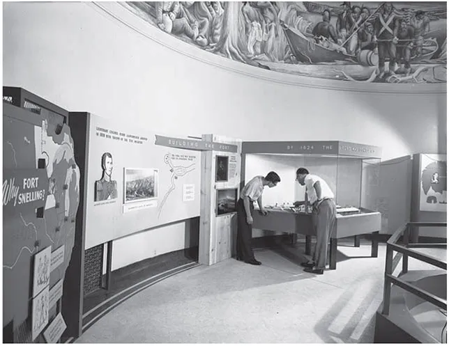 Figure 3. “Visitors Viewing Exhibit at the Round Tower Museum,” circa 1958. Courtesy Minnesota Historical Society.
