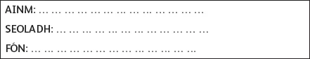 | An rĂșnaĂ | Agus do sheoladh? |