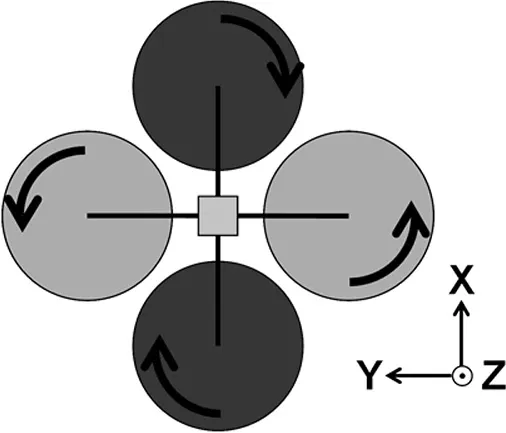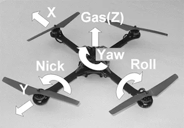 Quadrocopters are aircraft with four propellers. They have the same control capabilities as helicopters. Figure 1 illustrates this. The stick assignment of the remote control, as shown in Figure 2, is most commonly selected. However there are also model pilots who swap the left and right sides.