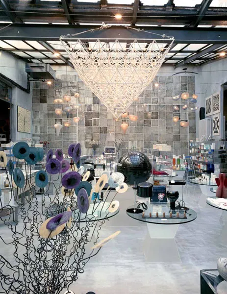 Milanās Corso Como features an eclectic mix of old and new furniture to display its products. Quirky lighting and art adorning the walls also help create atmosphere.