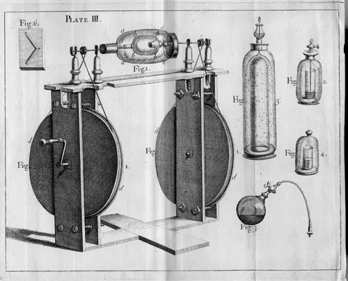 FIGURE 1.3 Apparatus of Francis Hauksbee. From Hauksbee, 1709, see Note 5. Public Domain. Authorâs copy.