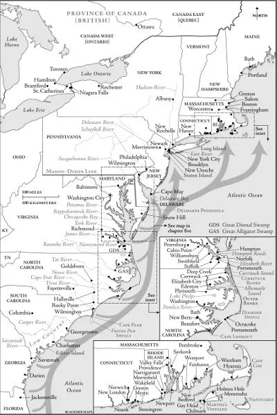 Figure 1. Principal Underground Railroad Route Maps, Overland and Seaborne, with an Emphasis on Ports, Inlets, and Waterways of the Maritime Underground Railroad. Maps by Kate Blackmer.