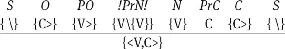 | voiced | {v{u}}: [b] | {v}: [d] | {u,v}}: [g] | {C} |