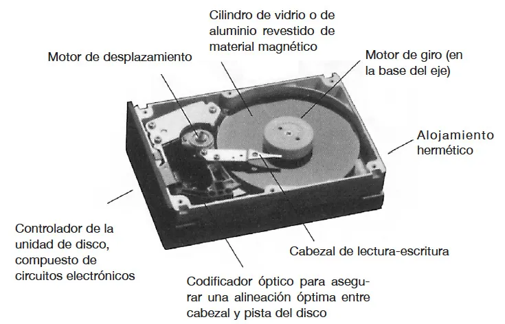 Figura 1.1. Componentes principales de una unidad de disco típica