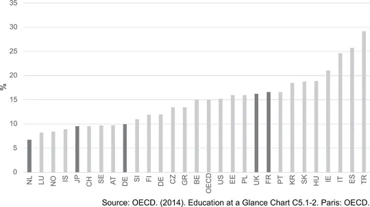 Figure1.1Percentage NEETs in population (15–29 years) in Europe and Japan (2012).