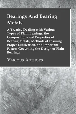 A Treatise Dealing with Various Types of Plain Bearings, the Compositions and Properties of Bearing Metals, Methods of Insuring Proper Lubrication, and Important Factors Governing the Design of Plain Bearings