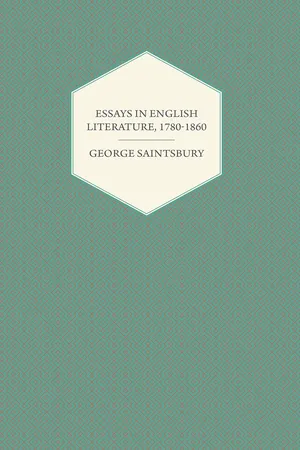 Yes, you can access Essays in English Literature, 1780-1860 by George Saintsbury in PDF and/or ePUB format, as well as other popular books in Literature & Literary Essays. We have over one million books available in our catalogue for you to explore.