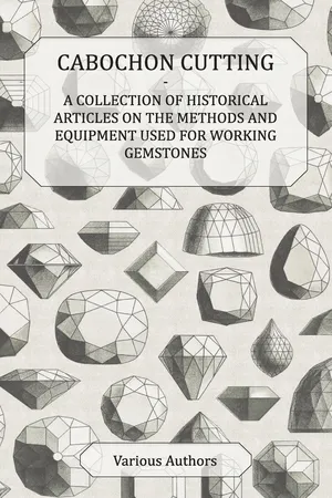 Yes, you can access Cabochon Cutting - A Collection of Historical Articles on the Methods and Equipment Used for Working Gemstones by Various in PDF and/or ePUB format, as well as other popular books in Biological Sciences & Geology & Earth Sciences. We have over one million books available in our catalogue for you to explore.