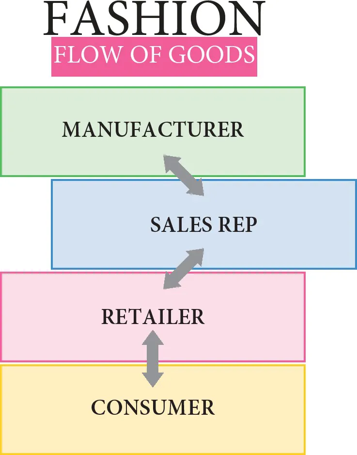 The fashion industry is like many businesses except for some key differences that must be considered. In the following sections, the way a product gets from the maker to the seller will be examined first in terms of traditional marketing and then again as it pertains to fashion marketing. The wholesale fashion industry is characterized by sales representatives and their business relationship with manufacturers (also known as vendors). There are three basic types of sales representatives (commonly referred to as reps): (a) manufacturerās or corporate reps, (b) independent reps, and (c) road reps.
