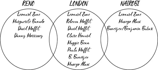 āBut you donāt know theyāre the principals! There were probably a hundred other people in that casino in Reno. Youāre just selecting these names; itās completely arbitrary.ā He pointed to the Reno circle. āMarguerite Banado, for instance.ā