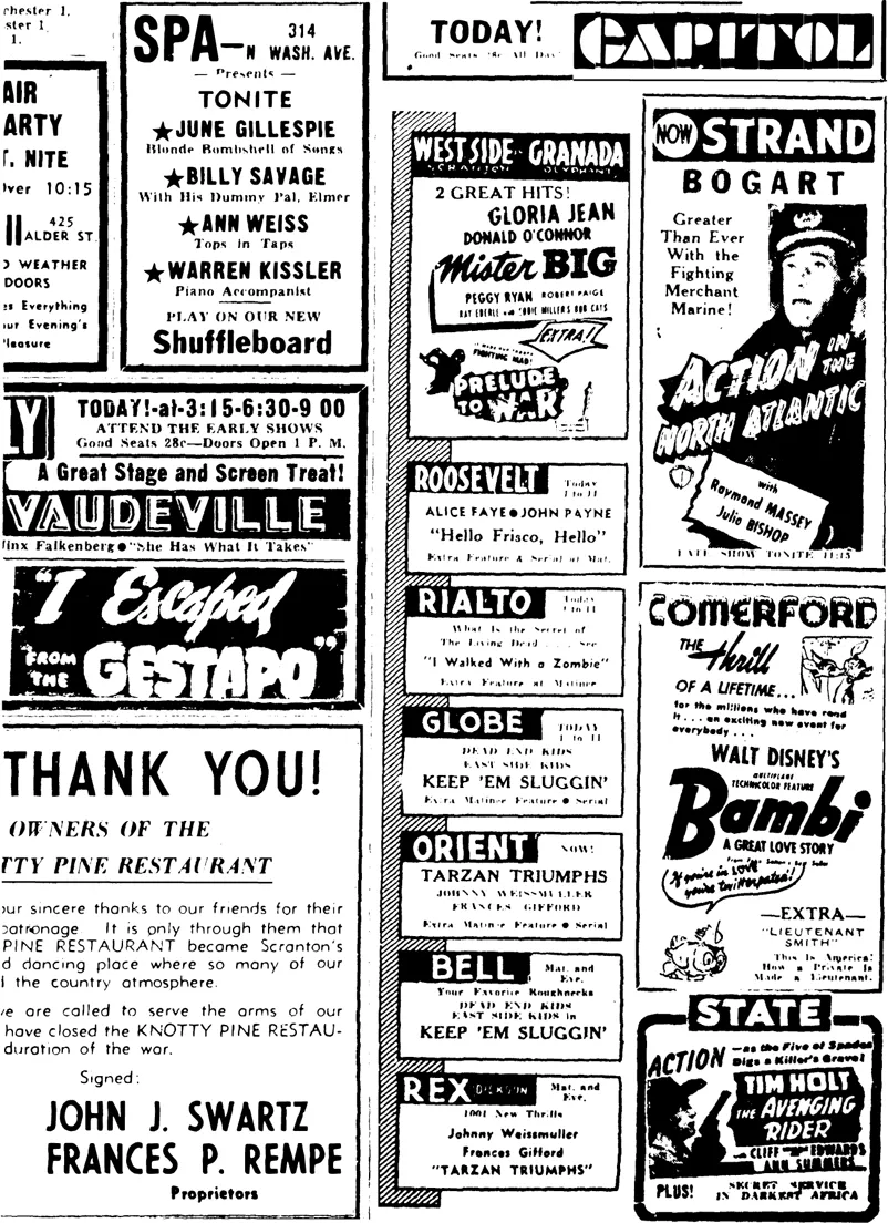 In 1943, however, I needed a family, and while I enjoyed an occasional trek to Central City, as downtown Scranton was called, where the theaters had red-carpeted foyers and lighting fixtures shaped like cigarette cases and compacts, my true home was the West Side. I had been a moviegoer for almost two yearsâan uncritical one but able to recite the names of the stars and record my impressions of the films I saw in a diary, writing in a scrawl as yet unsmoothed by the Palmer Method.