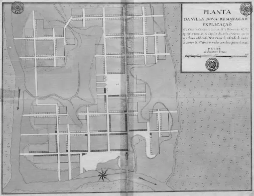 Domingos Sambucetti, an engineer of Italian origin, together with Captain Ignácio de Castro de Moraes Sarmento, formed the pair responsible for the establishment of this new town over an indigenous site called Santa Ana do Rio Mutuacá. See the Planta da Villa Nova for this new town in figure 1.3.