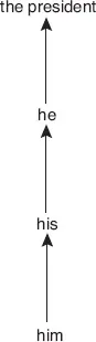 Linguistic analysis shows how devices of cohesive reference are mobilised here to tie together the identity of âthe presidentâ. Following the presentation of âthe presidentâ in clause (1), the president is tracked by the re-presentations âheâ, âhimâ and âhisâ in clause (2). These cohesive links allow the construction of a cohesive pattern, or cohesive chain, as displayed in Figure 1.1. This kind of pattern shows how cohesive ties are signaled to the reader throughout the short text.
