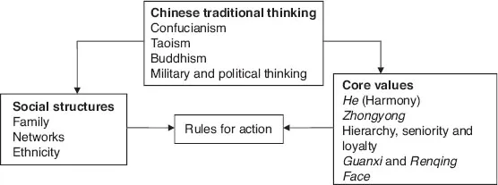 Figure 1.1 Cultural determinants of individual Chinese values (adapted from Reddingâs model, 1990)