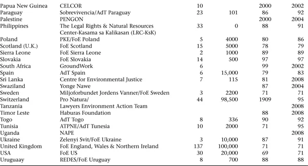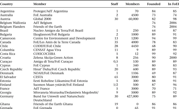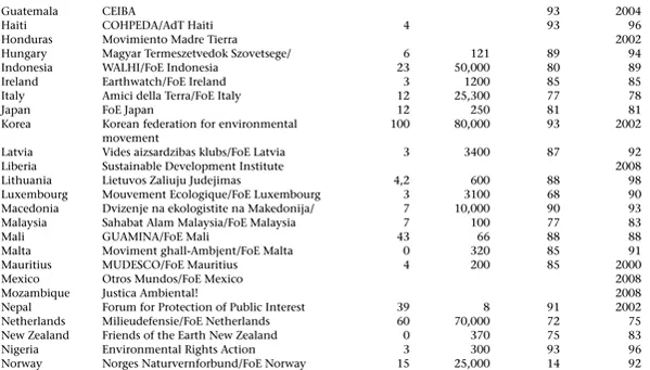 Table 1.1 National memberships and staff, Friends of the Earth International