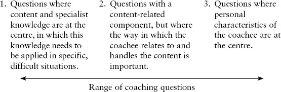 A characteristic feature of coaching is that issues arising from the coacheeās professional practice always provide the starting point. The conversations are not therapy sessions during which individualsā personalities are delved into deeply. It is useful, however, to consider the way in which the person contributing an issue deals with that issue personally, and to investigate the extent to which aspects of his or her behaviour are causing or prolonging the issue. The conversation can therefore centre on personal performance, but always in the context of practice.