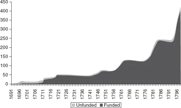 Figure 1.3 UK national debt, 1692â1799 (funded and unfunded)