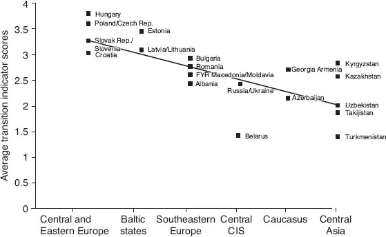 Source: “Transition Report 1999: Ten Years of Transition” (November 1999), EBRD, p. 27.
