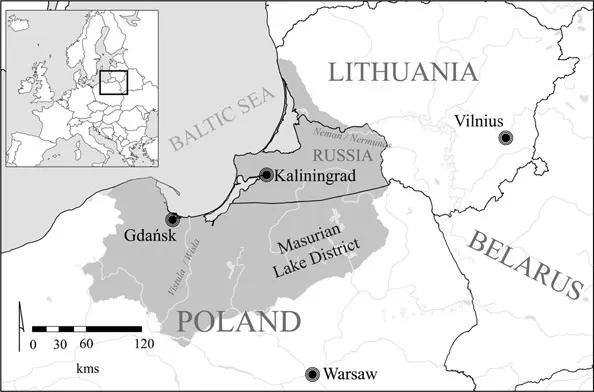 FIGURE1.4 The south-eastern Baltic region today with the territory of medieval Prussia shown in grey