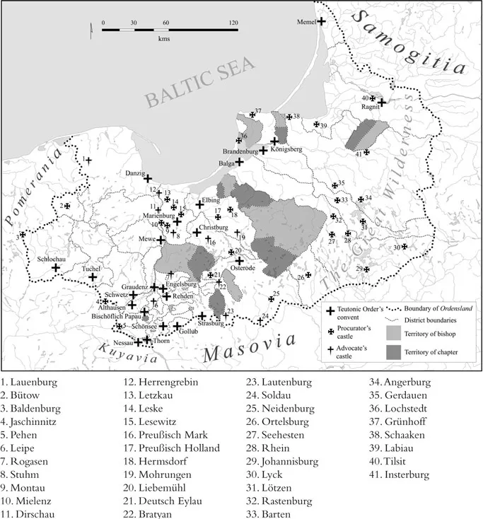 FIGURE1.5 The commanderies and episcopal domains within the Teutonic Orderâs state at the start of the fifteenth century (redrawn aft. Biskup et al., 2009). Engelsberg (Pokrzywno) was a commandery centre until 1416