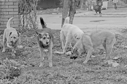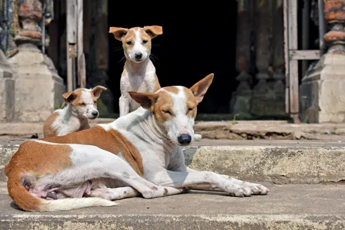 Figure 1.3 Street dogs in India, relaxing together in the centre of the city.