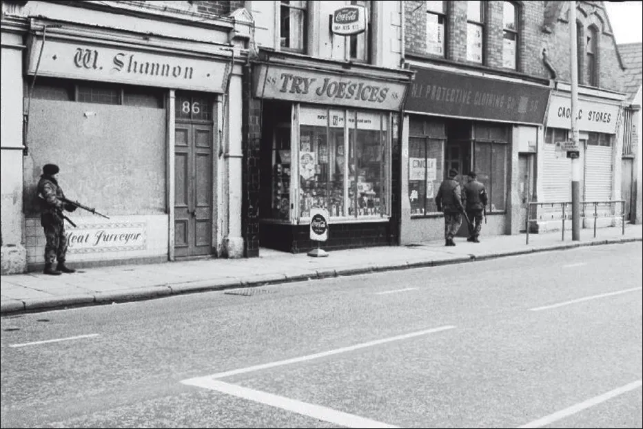 Just window shopping; troops on patrol in Falls Road area. (Mark āCā)