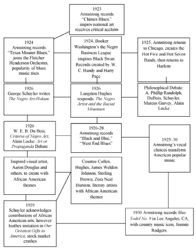 Figure 1. Louis Armstrong’s artistic contributions and interrelated artistic, political, and philosophical events, 1923–1930