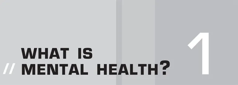 This chapter introduces the concepts of mental health and mental illness. It outlines some definitions of mental health from varied and respected sources and introduces some of the factors that will affect our perception of what is considered normal and what is considered abnormal. With regard to mental health, this would include the beliefs, thoughts, attitudes, feelings/emotions, sensations and behaviours that are deemed as normal within our environment. These attitudes and beliefs will affect how we treat others with mental health conditions, also the regard in which we hold, and the value we place on, our own mental health.