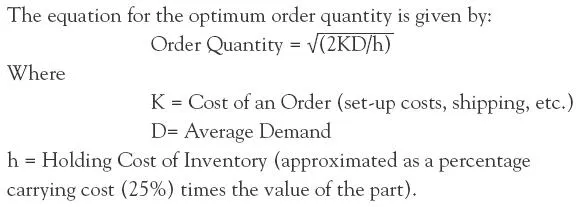 Thus, once the reorder point is reached, the order quantity is proportional to demand and the cost of an order and is inversely proportional to the holding cost. Thus, if ordering costs are high, then the equation tends to order a higher quantity and reduce the number of orders. On the other hand, if an item is expensive with high holding costs, then the equation tends to order a lower quantity and reduce inventory holding costs. These equations provide useful guidance and insight but, in a dynamic system with time delays and lack of information sharing, they are as likely to create the bullwhip as other ordering processes.