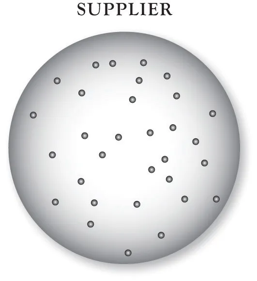 Willingness to pay is a key concept in pricing and yield management, and it underpins many of the issues surrounding value and nonvalue adding that are discussed in later chapters. As the expression suggests, customers vary in how much money they are willing to pay for a product or service. Some customers are willing to pay a high price, while others will purchase only at a lower price. This reflects, to a large extent, the relative value they are placing on a product or service that embodies their perception of the product or service. The diagram in Figure 1.2 represents the features or attributes of a product or service from a supplier perspective. The circle titled āsupplierā contains a series of dots that represent product or service attributes, for example, technical features of the product itself, such as functionality, ease of use, reliability, and fit for the job; aesthetic features such as appearance, feel, and attractiveness; and support features such as service, parts, and warranties. These are all attributes that the supplier believes customers value or think that the product or service should contain.