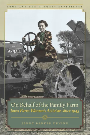 Focusing on women in four national farm organizations in Iowaâthe Farm Bureau, the Farmers Union, the National Farm Organization, and the PorkettesâDevine highlights specific moments in time when farm women had to reassess their roles and strategies for preserving and improving their way of life. Rather than retreat from the male-dominated world of agribusiness and mechanized production, postwar women increasingly asserted their identities as agricultural producers and demanded access to public spaces typically reserved for men.