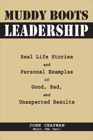 John Chapman is a longstanding observer and chronicler of leadership events. InĀ Muddy Boots Leadership, he describes 285 military leadership situations and the actions leaders have taken to meet the issue at hand. The leadership lessons learned and relearned by military leaders are applicable to a wide variety of organizations, both civil and military. Many are truly surprising; all are written with a certain "spark" that those in leadership positions will immediately understand. The text is augmented with some truly classic sidebars.
