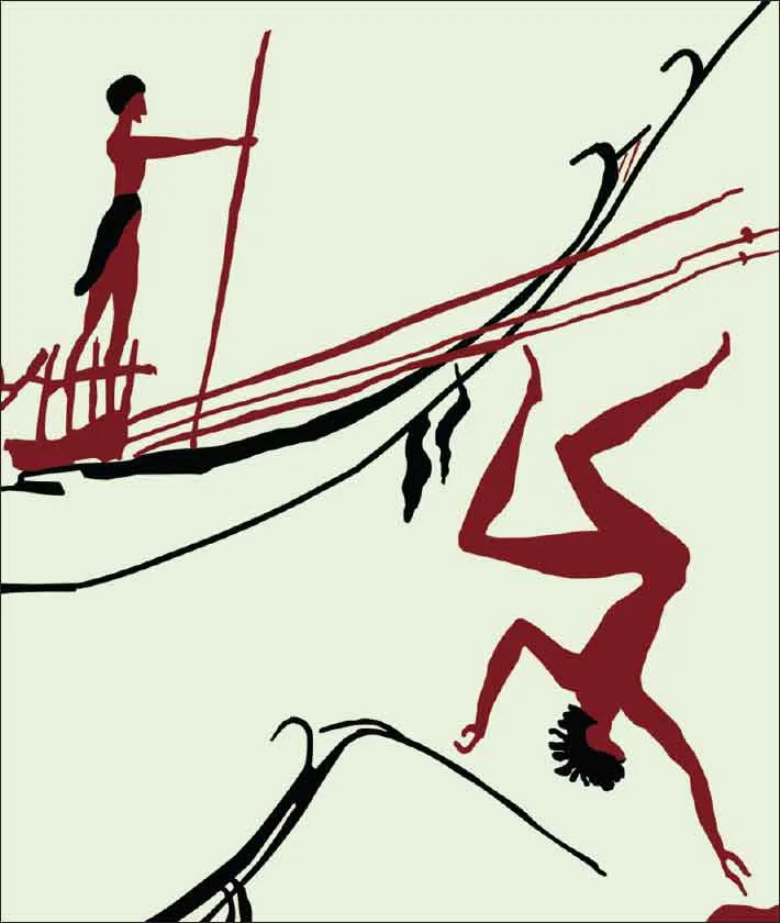 Fig. 1.3. Shipwreck scene, from the north wall of Room 5, West House, Akrotiri (drawing A. Chapin and J. Silvia after Doumas 1992, pl. 29)