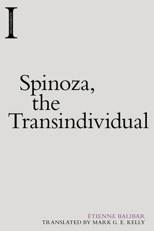 Yes, you can access Spinoza, the Transindividual by Etienne Balibar, Mark G. E. Kelly in PDF and/or ePUB format, as well as other popular books in Philosophy & Modern Philosophy. We have over one million books available in our catalogue for you to explore.