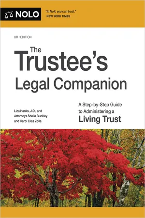 Yes, you can access Trustee's Legal Companion, The by Liza Hanks,Carol Elias Zolla in PDF and/or ePUB format, as well as other popular books in Law & Personal Finance. We have over one million books available in our catalogue for you to explore.
