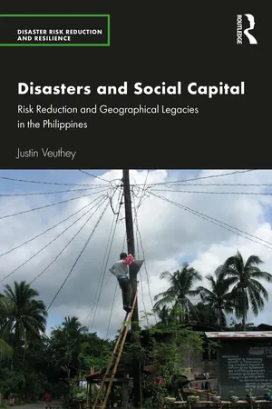This book analyzes social capital and preparations for natural hazards in the Philippines. It emphasizes the importance of inequalities, contextualization, and scale, while also underlining the significance of historical and political contexts to better understand social dynamics. Social capital continues to be a debated concept, but it can be useful for thinking about how human societies interact with natural hazards. This book contributes to the growing scientific inquiries which have begun to address the connections between social capital and "natural" disasters. Chapters explore the links between these two fields of knowledge by analyzing the Filipino situation in general, as well as detailing a specific case study of a rural municipality in the Eastern Visayas region. The book's central argument is that economic inequality is detrimental to social capital which then has negative repercussions on preparing for natural hazards. In an analysis at several geographical scales, Justin shows how inequality, via social capital, makes societies more at risk of having natural hazards turn into disasters. The book argues that a cautious use of the concept of social capital, which is cognizant of the historical and geographical complexities of the context it is applied to, has the potential to improve the way people collectively prevent hazards from turning into disasters. It is essential reading for students, scholars, disaster risk management practitioners, policymakers, and anyone seeking to understand the complexities of climate change, inequality, and crisis resilience.