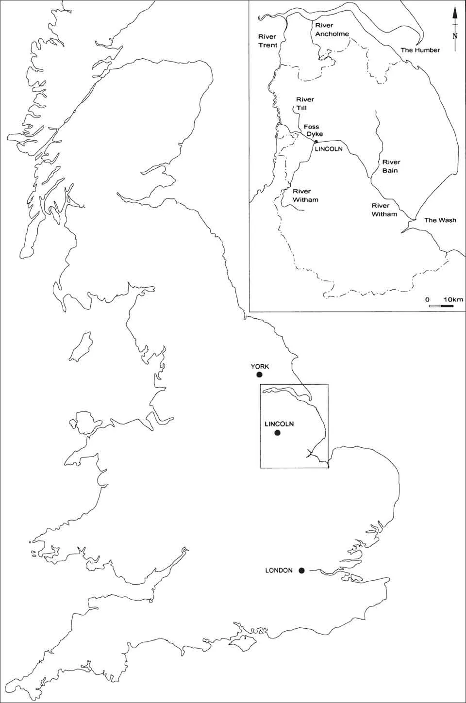Fig. 1.1. Location map of Lincoln, with inset showing principal river-system of the county.