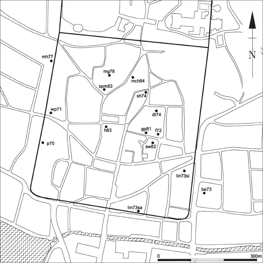 The sites published here were excavated between 1972 and 1987. In the text they are frequently referred to by their codes (eg, f72 for the Flaxengate excavations that commenced in 1972). This particular site was a proposed Crown Office development on the line of the projected third phase of the Inner Ring Road that was in the event never constructed; while the road was still a current proposal, property on its line, including the Hungate site (h83), was blighted. Otherwise residential and commercial developments were the major reasons for the archaeological investigations, and the hillside has continued to see further development of this nature since. The commercial schemes, like Saltergate (lin73sa), tended to be those in the southern part of the area, closer to the commercial centre, and they included a multi-storey car park east of Broadgate (be73). With the vagaries of the economy generally and the property market in particular, including an acute crash in 1973â4, some of the proposed schemes were delayed until several years after the excavations had been (in some cases hurriedly) completed; others never materialised at all. Some sites were investigated for assessment purposes. The excavations varied in the extent and depth of the stratigraphic sequence uncovered, and each had a different period emphasis. In some cases (eg, Danes Terrace: dt74), the investigations were not planned or allowed to penetrate to the earlier levels. The relatively short distances between some of the sites, however, offered possibilities for understanding archaeological sequences and the changing topography across a wide area of the Lower City (Fig. 1.3). The principal gaps are the High Street frontage and the north-eastern quadrant â although a corner of this was, and still is, occupied by the medieval Bishopâs Palace. This monument has been the subject of a repair scheme by English Heritage (Coppack 2002), supported by detailed survey work undertaken by the City of Lincoln Archaeology Unit in the early 1990s.