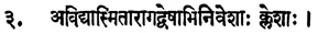 Avidyāsmitā-rāga-dveṣābhiniveśāḥ kleśāḥ.
