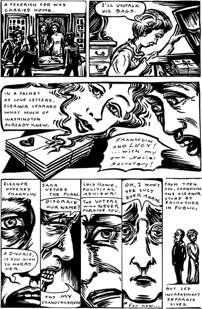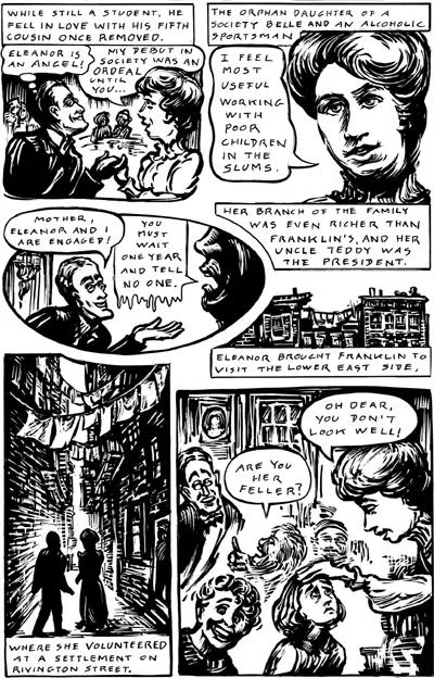 The two had âmetâ on the nursery floor when Eleanor was two and Franklin was five and she rode on his back. She had weathered an unhappy, insecure childhood, with her mother dead when she was only eight and her brother a few weeks after. Her father, an alcoholic, spent much of his time in sanitariums. Probably it was this difficult life that prepared her eagerness to accept a vision gaining popularity among many young women, that of a mission among the unfortunate. By nineteen, she taught in a settlement house and investigated working conditions of women on behalf of a group that would remain close to her heart, the Consumers League. For Franklin she was sweet, tall, and a niece of president Theodore Roosevelt. They fell in love quickly and married in 1905. He was twenty-two, she three years younger. Franklinâs mother moved the couple into a New York house on East 36th St., then into a new house on East 65th St., next door to the twin townhouse that Sara Roosevelt had built for herself. The interference of a mother-in-law added to Eleanorâs emotional insecurity with three young children to care for in the first five years of their marriage, and even from its early years, it was not an especially happy partnership.