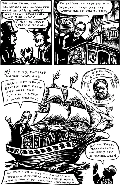 These relations also wielded great political power. A more distant ancestor, a sugar merchant, had helped draft the first constitution of New York State. Others included a legislator in the New York state assembly, horse breeders, ship owners, industrialists, and above all country gentlemen. His fifth cousin, Theodore Roosevelt, was already rising in power as New York police chief, mayoral candidate and dynamic political orator, when Franklin was still a teenager.