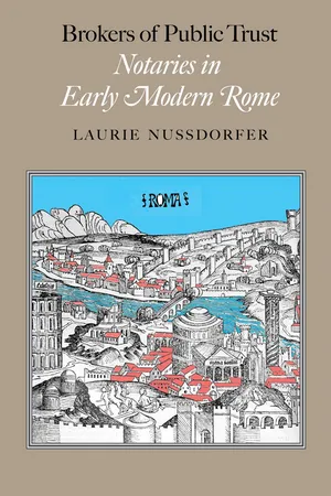 Notarial acts often go unnoticed, but they are essential to understanding the history of writing practices and attitudes toward official documentation. Based on new archival research, Brokers of Public Trust focuses on the government officials, notaries, and consumers who regulated, wrote, and purchased notarial documents in Rome between the 14th and 18th centuries. Historian Laurie Nussdorfer chronicles the training of professional notaries and the construction of public archives, explaining why notarial documents exist, who made them, and how they came to be regarded as authoritative evidence. In doing so, Nussdorfer describes a profession of crucial importance to the people and government of the time, as well as to scholars who turn to notarial documents as invaluable and irreplaceable historical sources.
